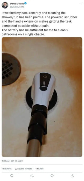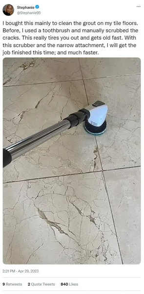 The power magic brush can be used on a variety of surfaces, including tile, grout, bathroom fixtures, kitchen appliances, outdoor furniture, and more.